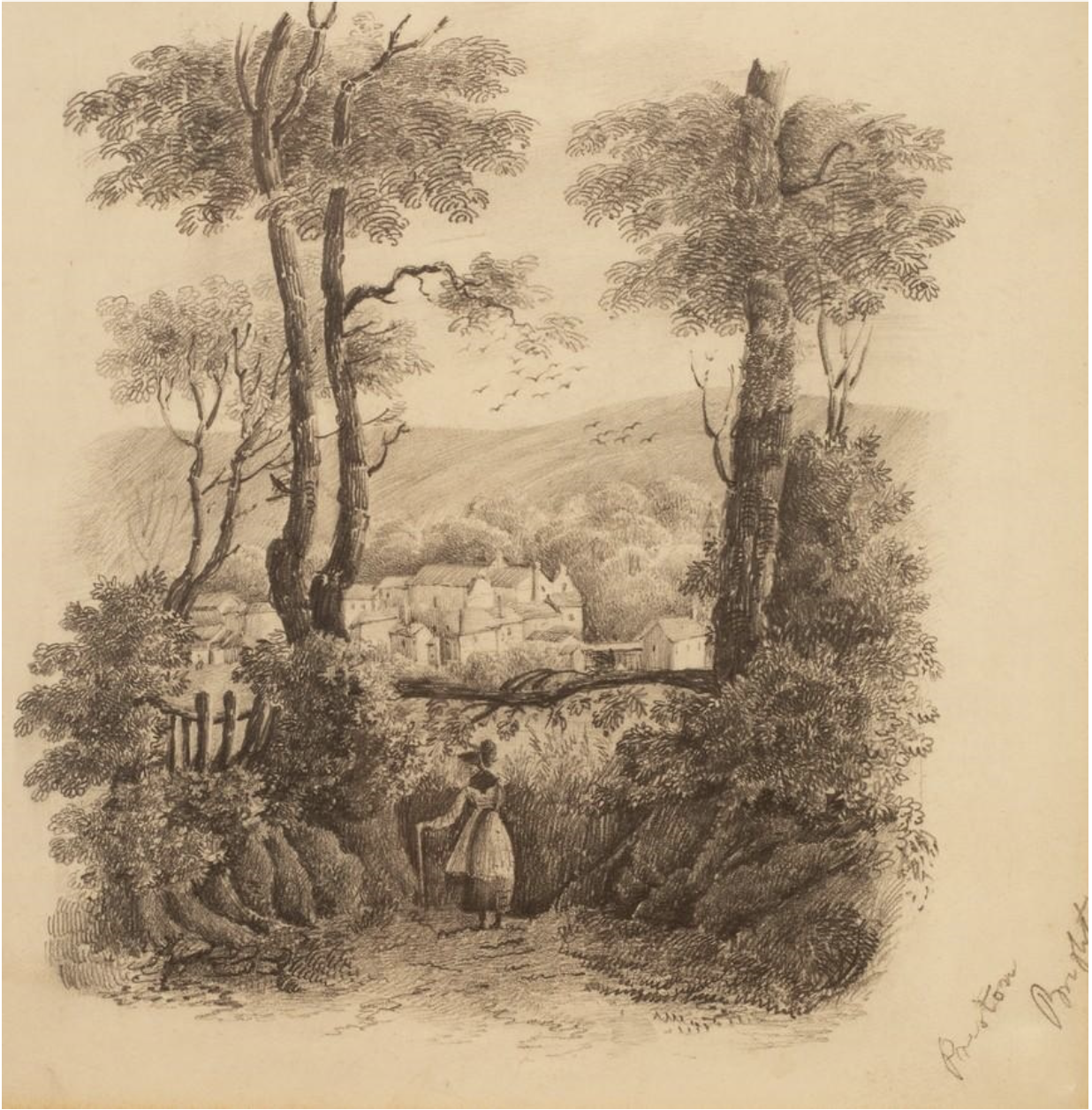 An image of Preston Village from 1830. The image appears to be drawn from the perspective of what is now Millers Road, looking to the East.